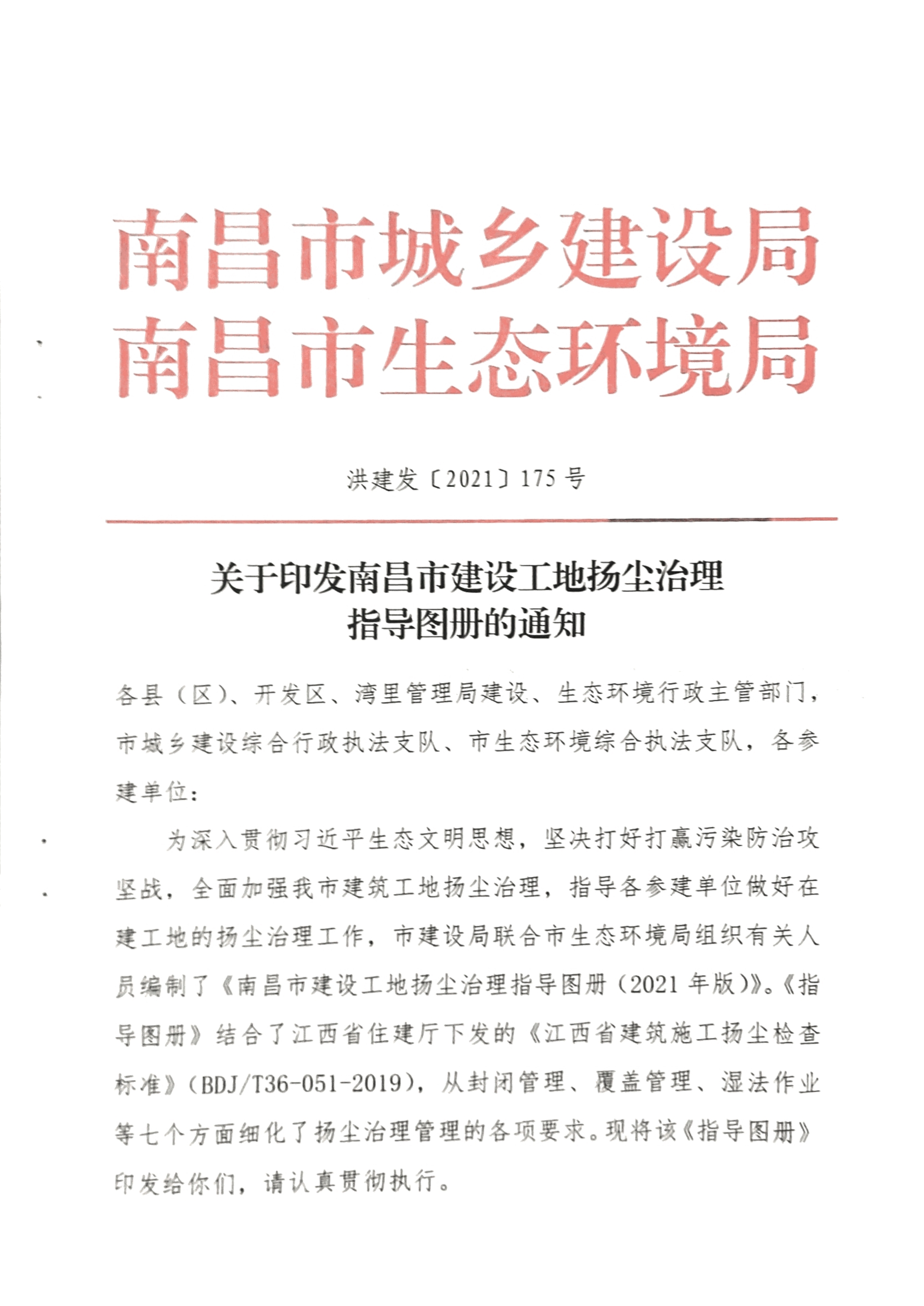 关于印发南昌市建设工地扬尘治理指导图册的通知
