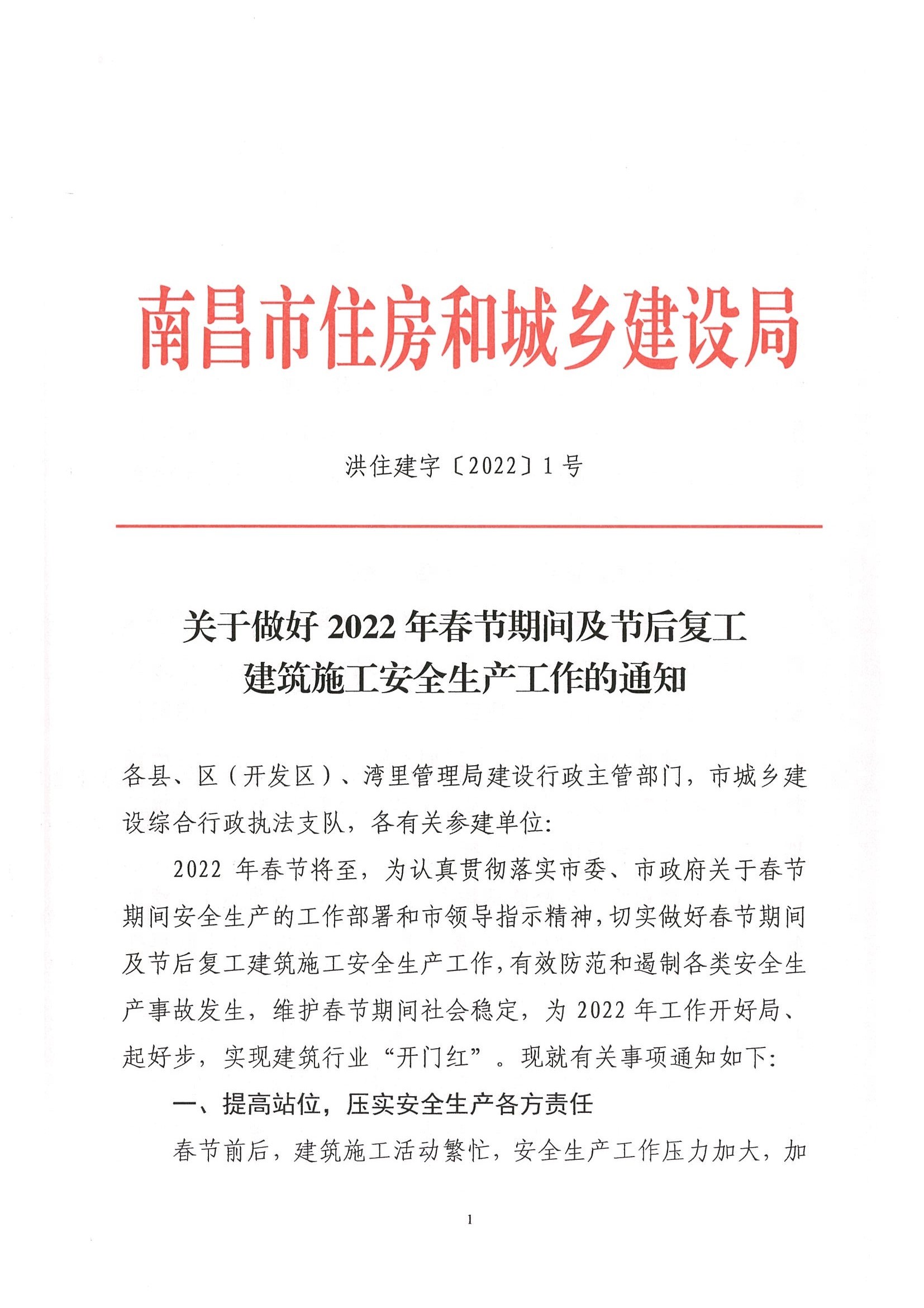 关于做好2022年春节期间及节后复工建筑施工安全生产工作的通知